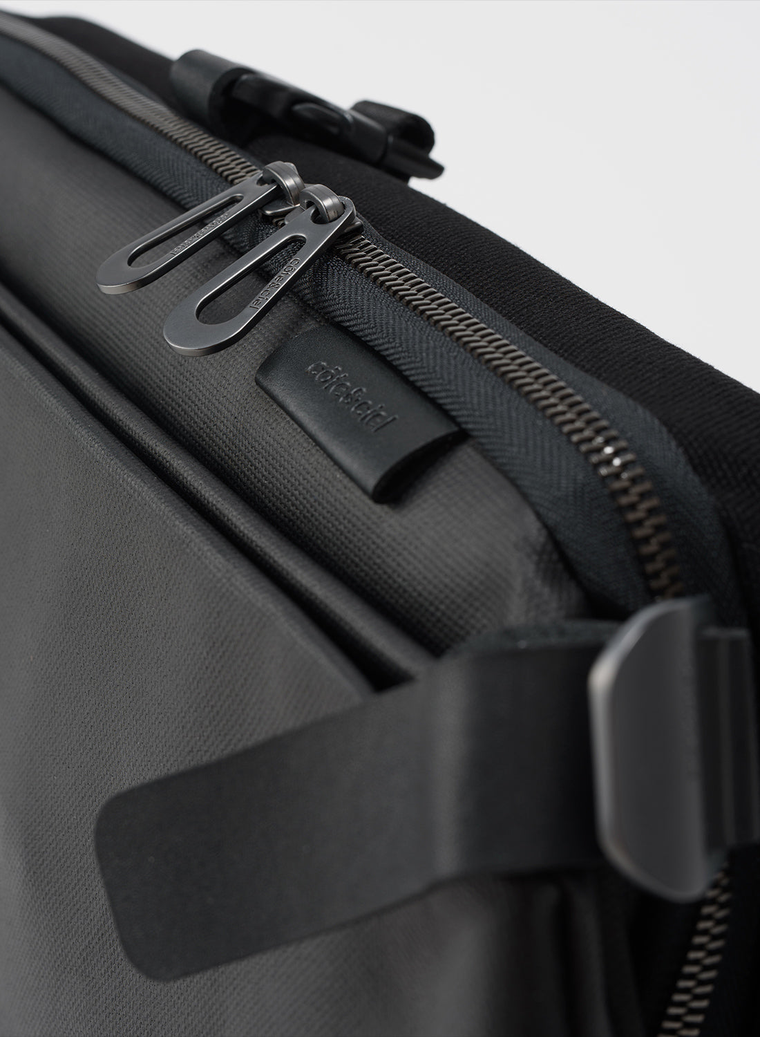 Inspired by the quivers worn in traditional horseback archery, the Riss is designed to be worn close to the body, either over the shoulder or across the back.
