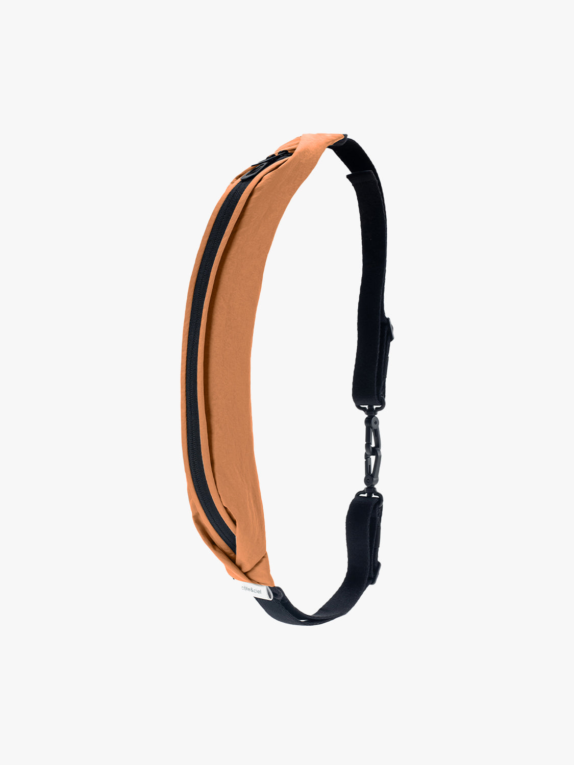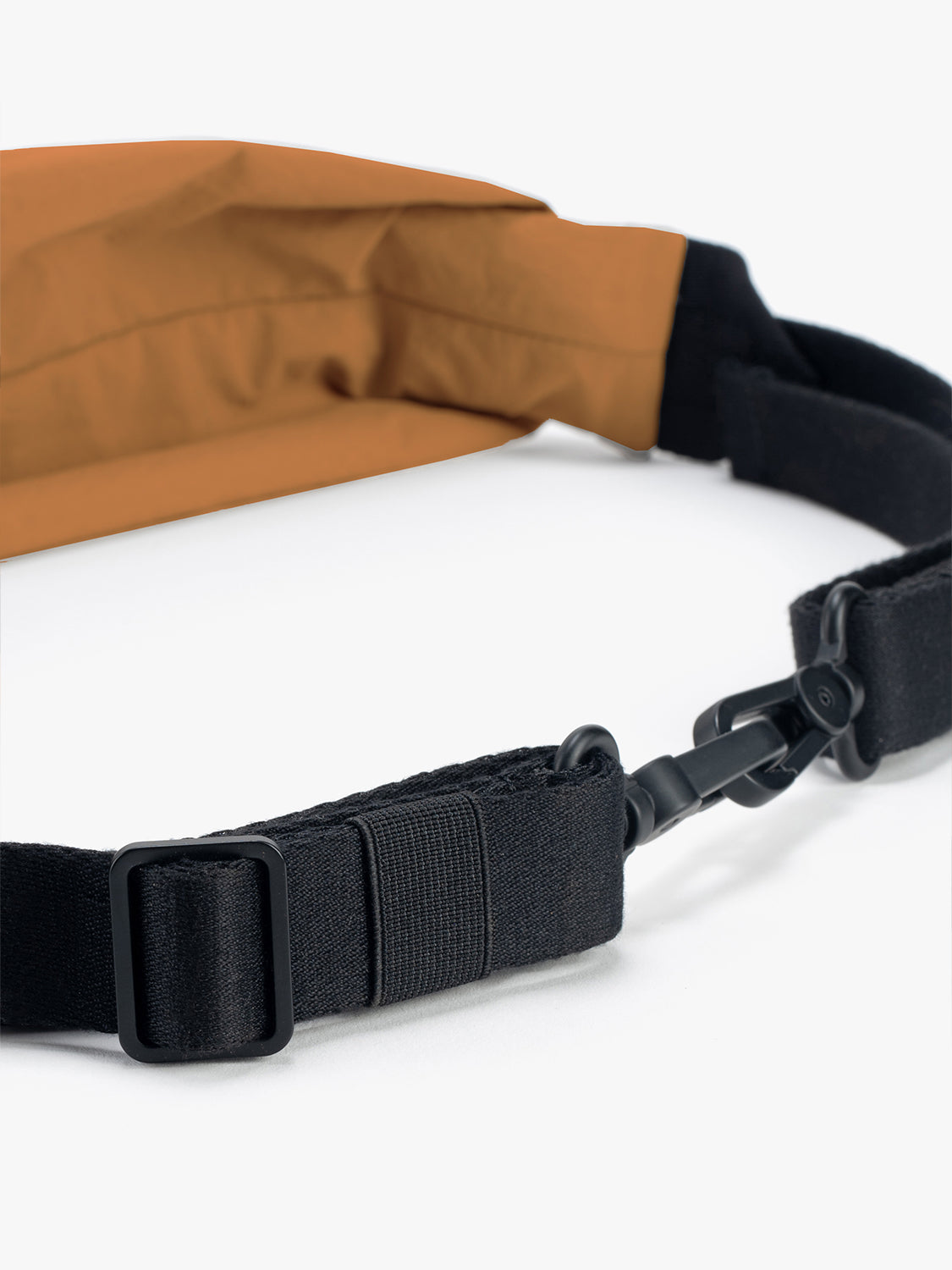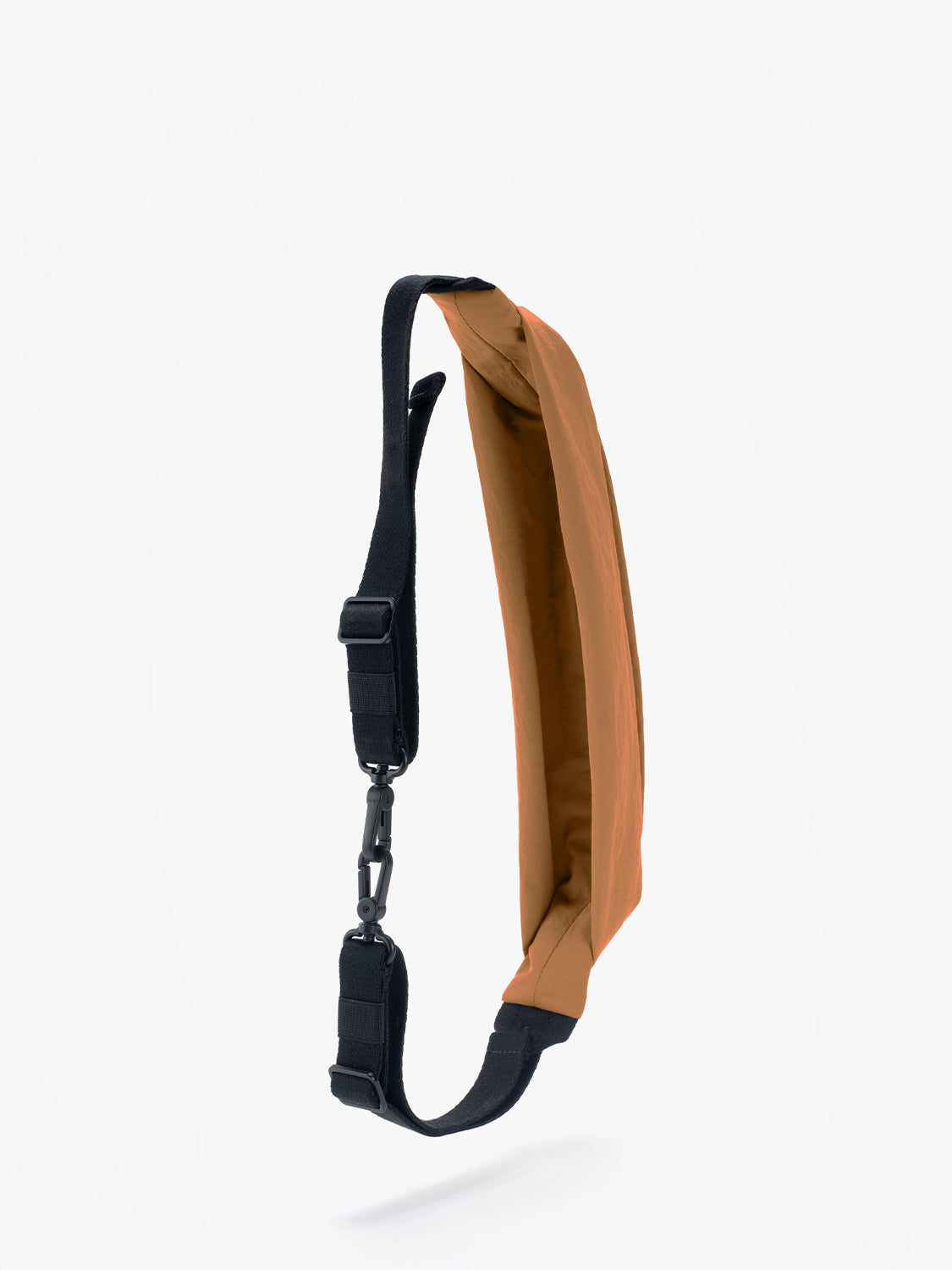This iconic shoulder strap can be worn on its own, either as a minimal crossbody bag or around the waist. Using the matt black carabiner clips, the ADDA can be attached to other côte&ciel products as an additional accessory, functioning as a carrying strap or extra storage compartment on bags.