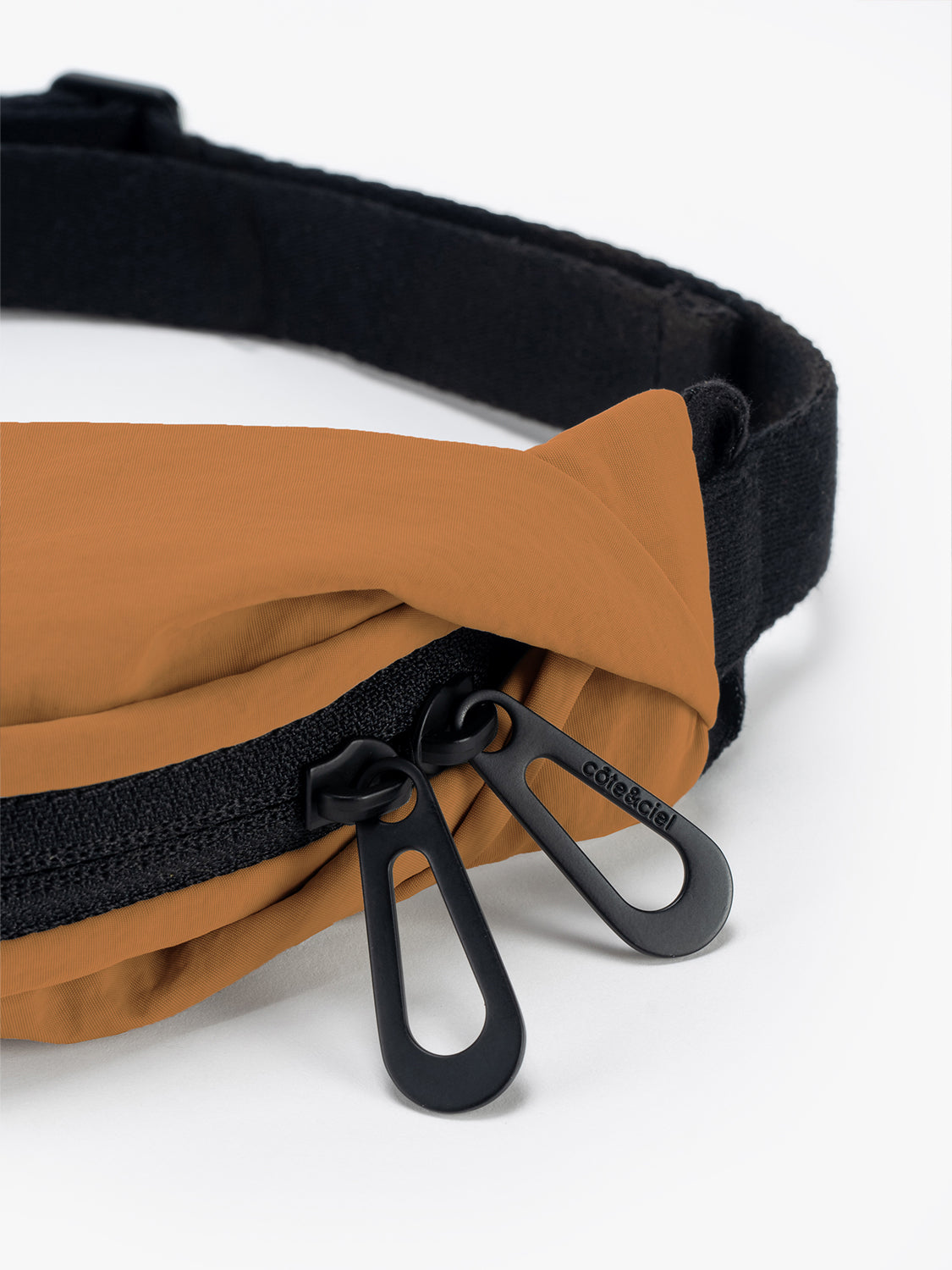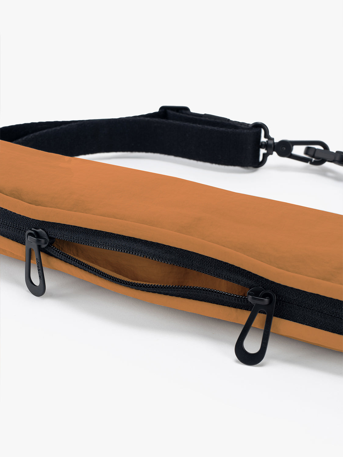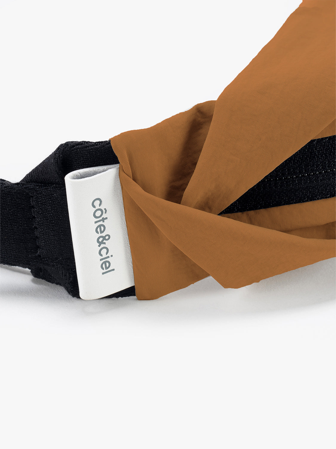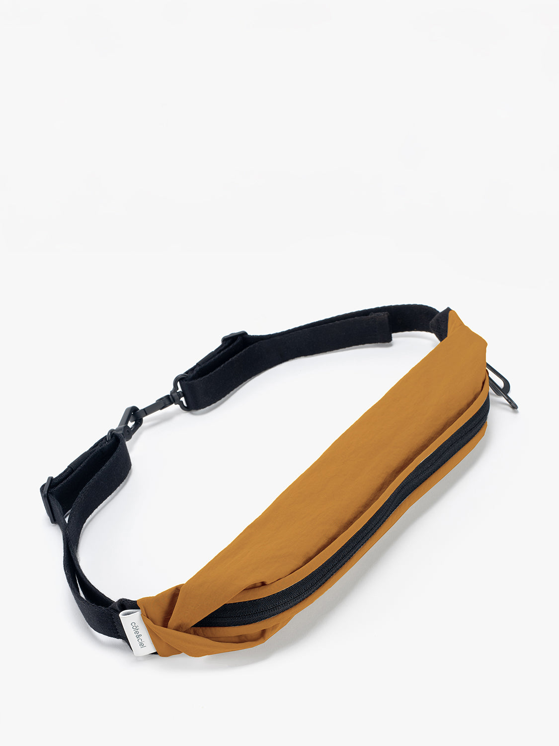 This iconic shoulder strap can be worn on its own, either as a minimal crossbody bag or around the waist. Using the matt black carabiner clips, the ADDA can be attached to other côte&ciel products as an additional accessory, functioning as a carrying strap or extra storage compartment on bags.