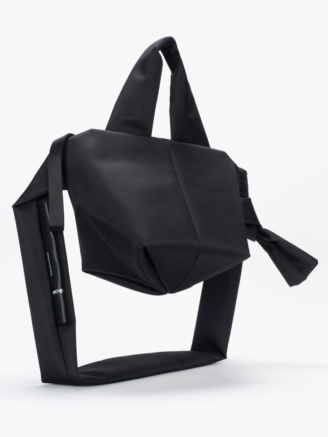 The AMU MINI is a smaller iteration of the AMU with the opposite proportions: it has a smaller body but larger, exaggerated straps designed for comfort. It can be used as a handbag using the carry handles or across the body using the larger strap that can be removed if you choose. It has one secure internal pocket. It is made using ‘Sleek Black’ nylon.
