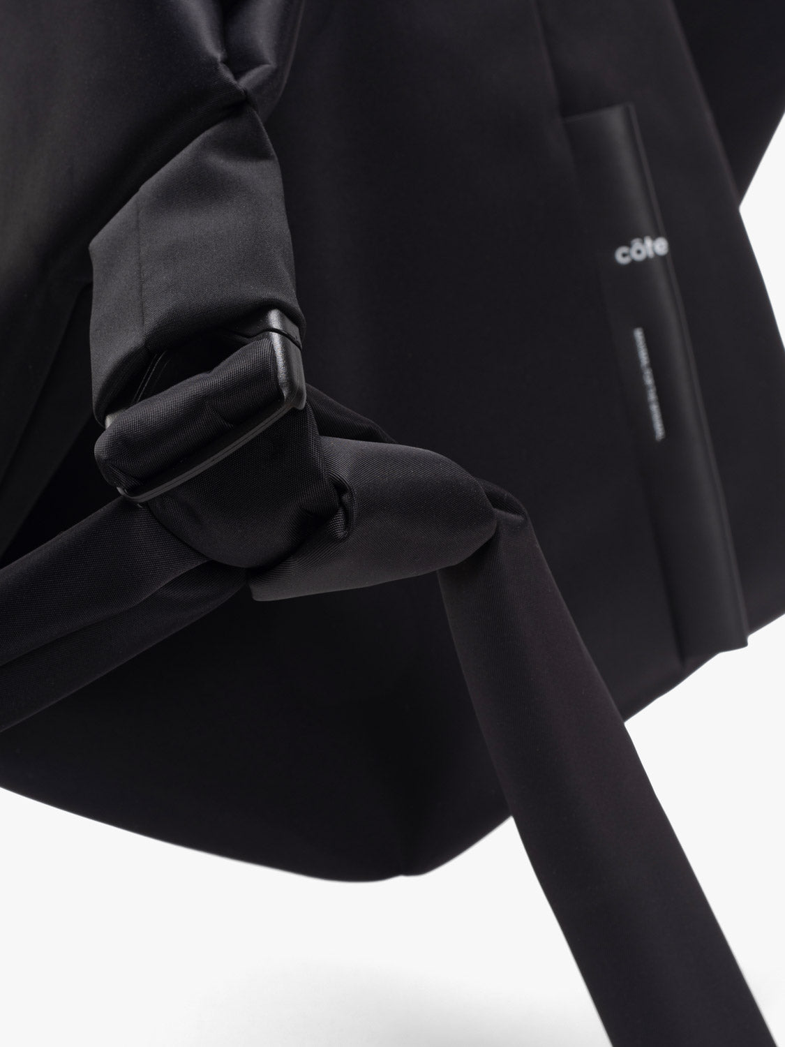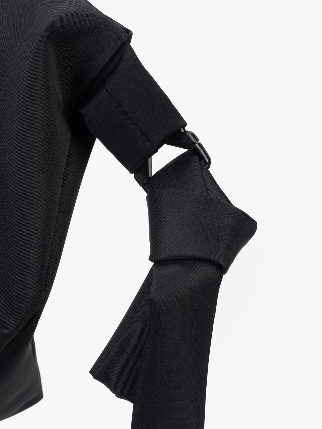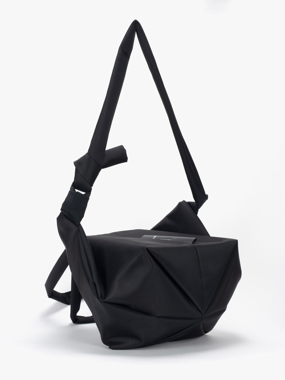 The AMU is a versatile bag that can shape-shift to create different looks. It can be used as a tote, a shoulder bag or across the body. Taking on an exaggerated silhouette, the main body is bigger whereas the carry straps are thinner and more petite. The AMU has a main compartment with an interior security pocket. It is made using ‘Sleek Black’ nylon.
