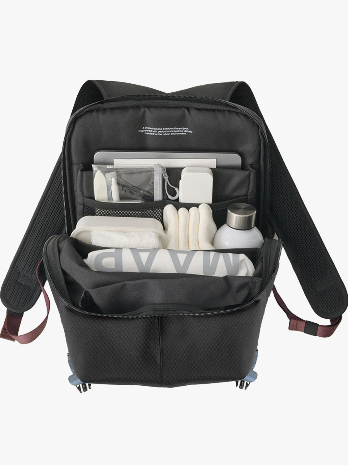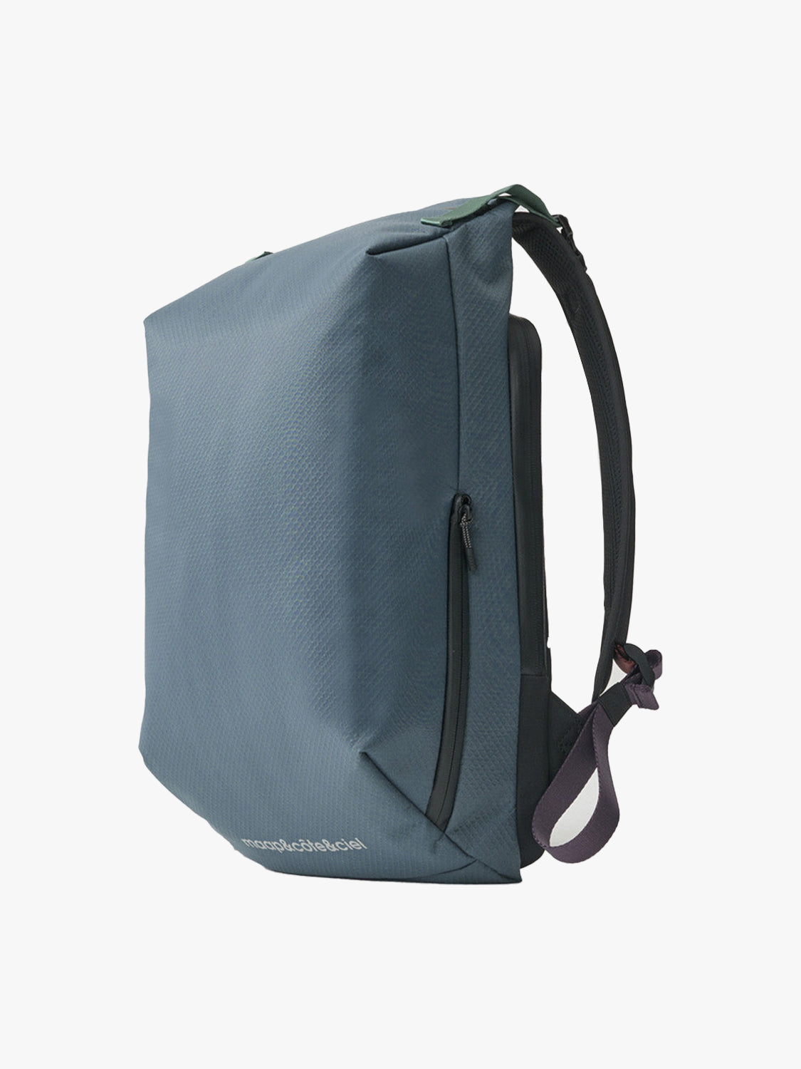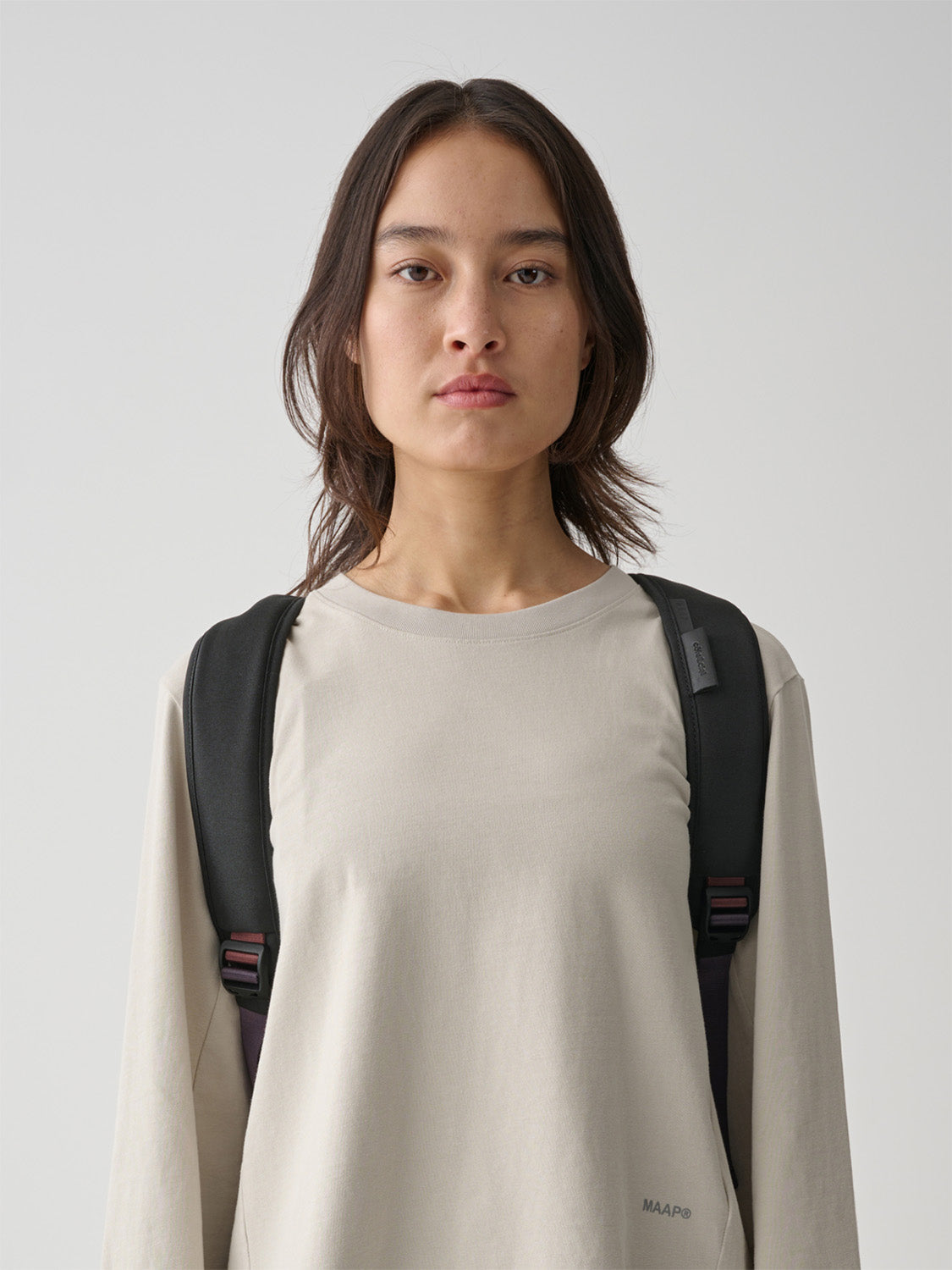 A compact daypack for those with a thing for symmetry and clean silhouettes, the SARU is suitable for everyday use , transporting a laptop, sketchbooks or documents. This SARU features three spacious external pockets: one at the top of the shell between the straps, and one down each side of the lower section of the main compartment. Opening the two buckles at the top, you will find the main compartment, featuring a padded device pocket that fits a laptop of up to 16”. This unique construction protects your laptop from theft.
