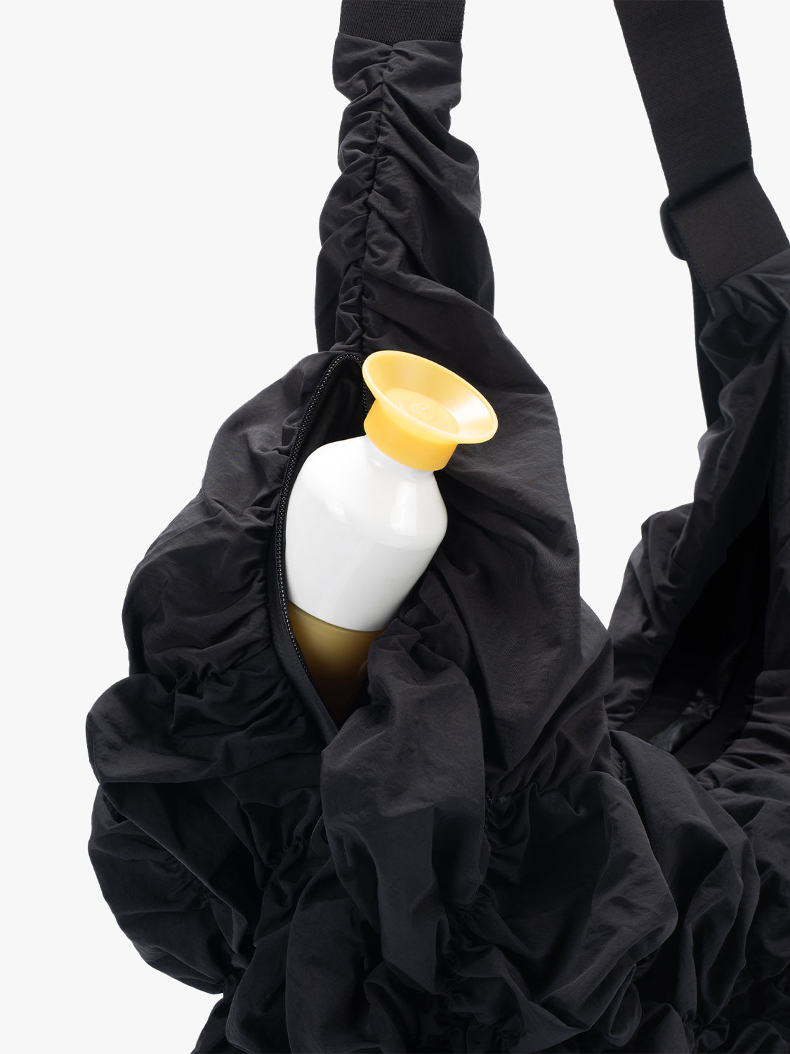 Crafted in Gathered Black, the smooth nylon is softly ruched to create a textured, sculptural finish.
