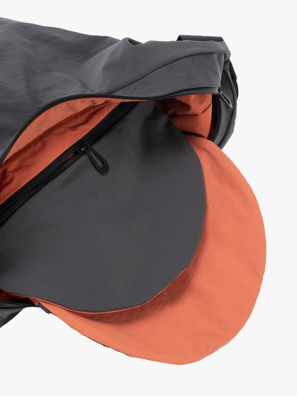 The compact version of the HYCO is a perfectly ergonomic crossbody bag. It follows the natural contours of the wearer’s body in a wrap-around way.