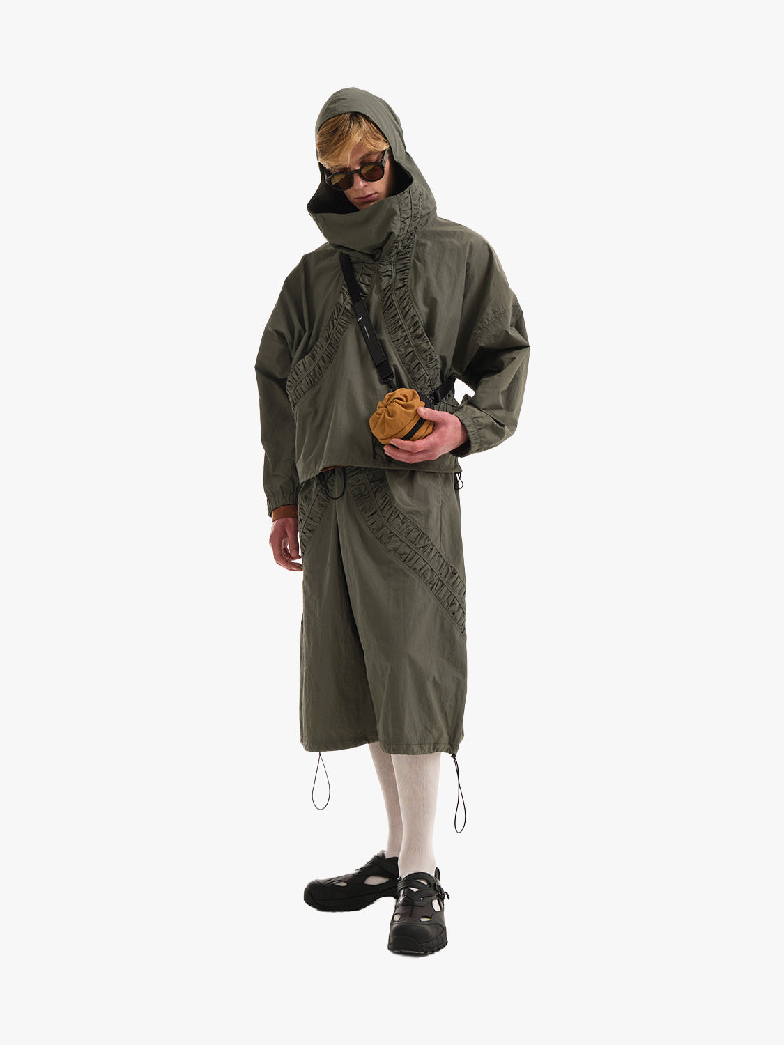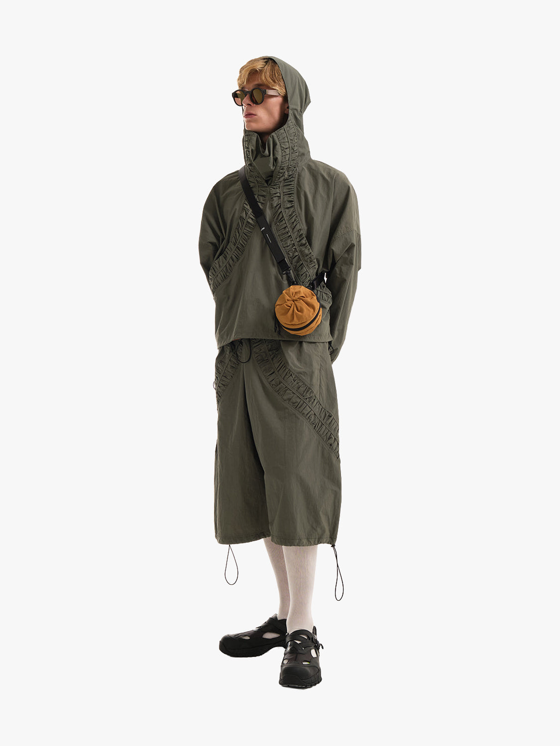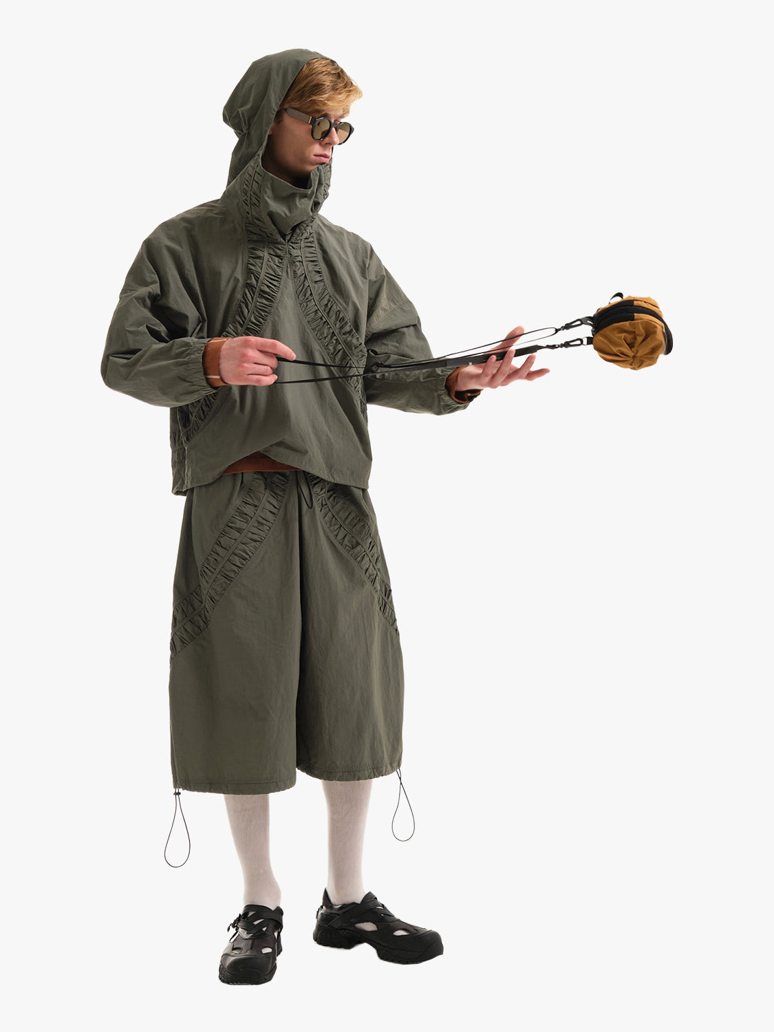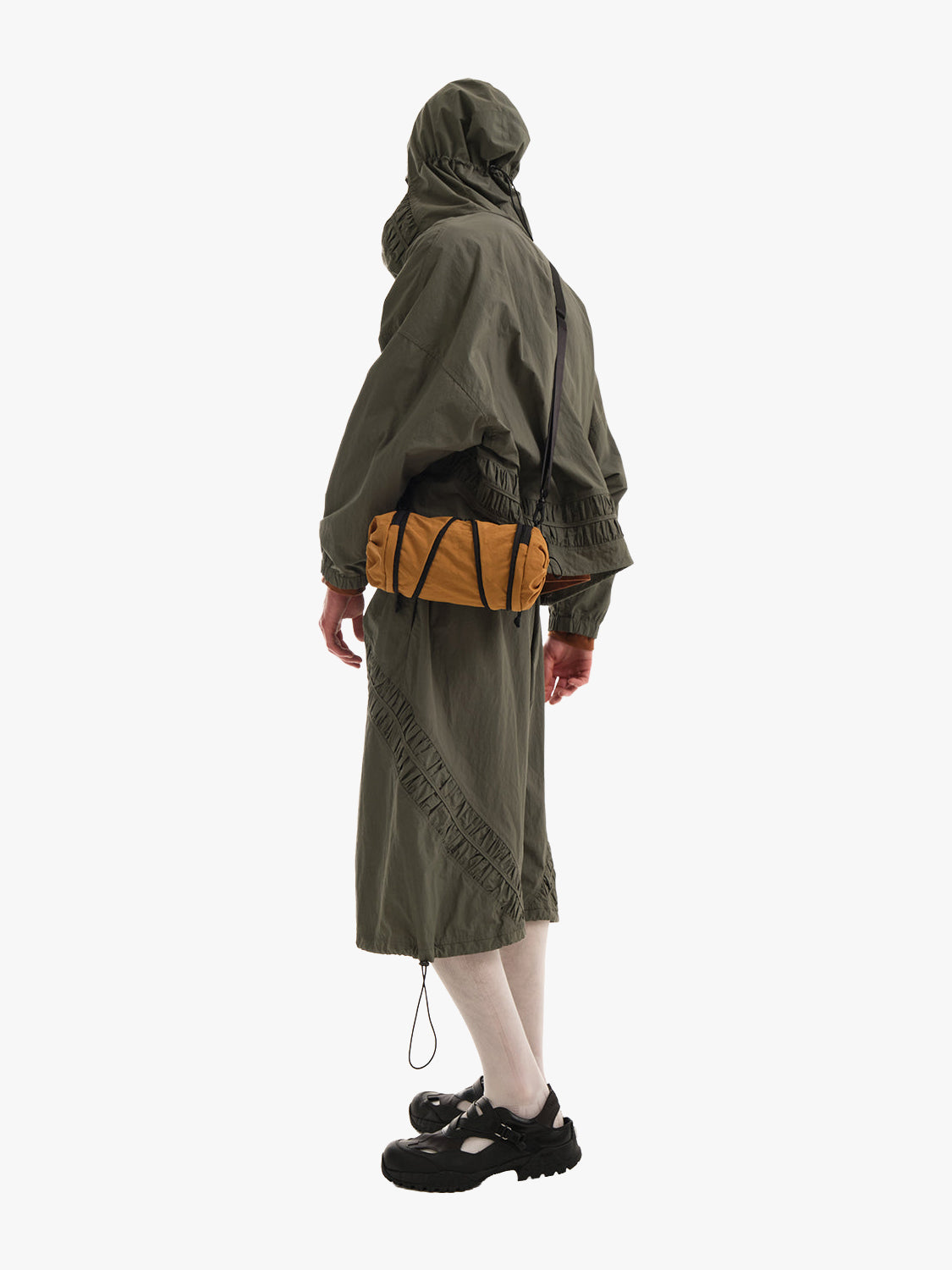 To meet specific storage needs, it can take the form of a compressed two-pocket bag or an expanded small duffle bag.