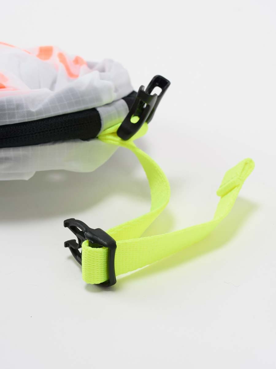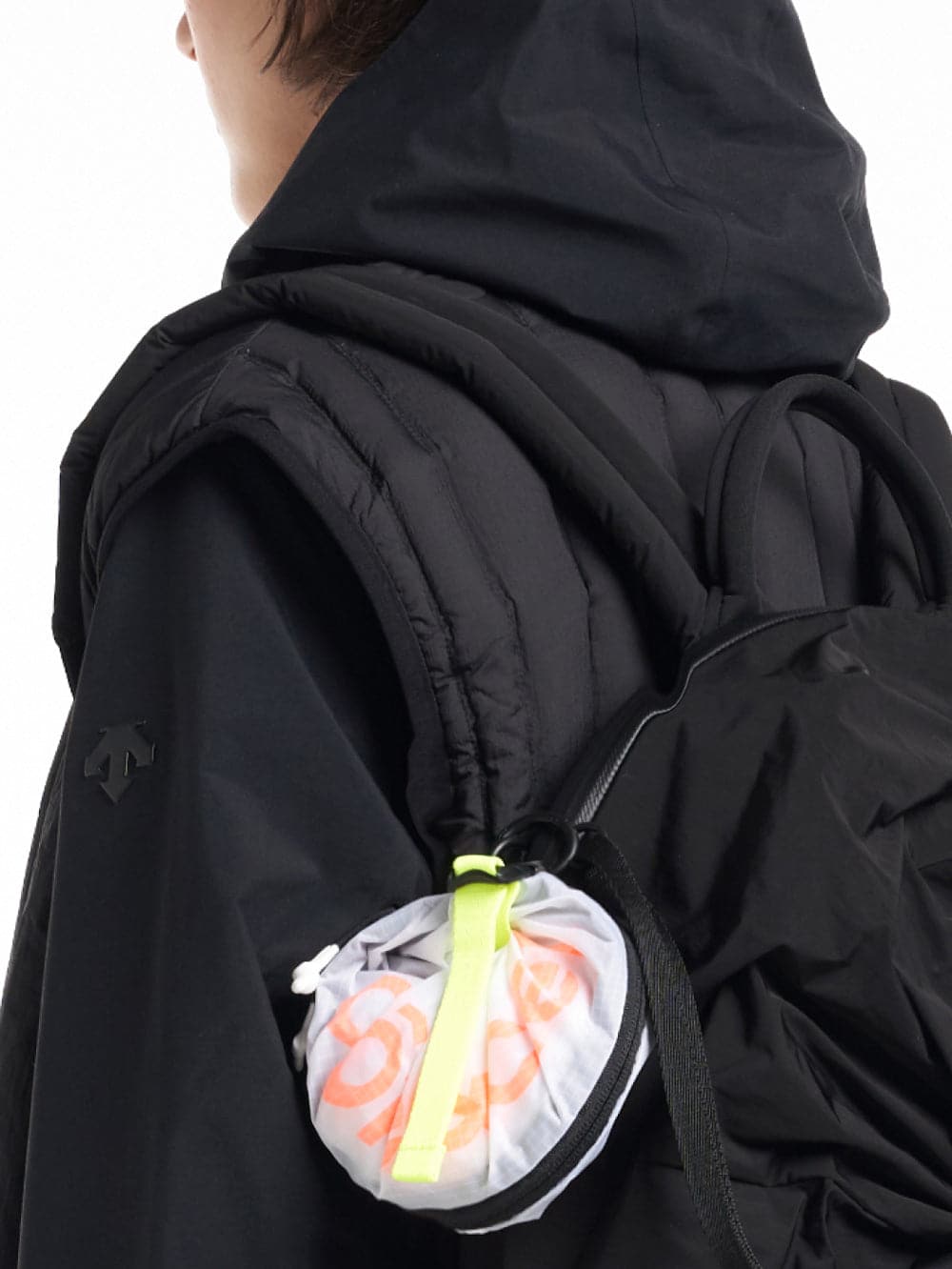 AÓOS XS เป็นกระเป๋าเล็กแบบบิดเกลียวที่มีห้าช่องภายในแยกกัน หนึ่งในนั้นสามารถซิปปิดเพื่อเก็บของชิ้นเล็กๆ ให้อยู่ในที่ของมันได้ ซิปรอบด้านช่วยให้กระเป๋าเปิดออกได้เต็มที่ สายหนังที่ยึดด้วยหัวเข็มขัดด้านนอกสามารถเปิดออกและนำ AÓOS ไปติดกับกระเป๋าอื่นๆ เป็นเครื่องประดับกระเป๋าขนาดเล็กได้