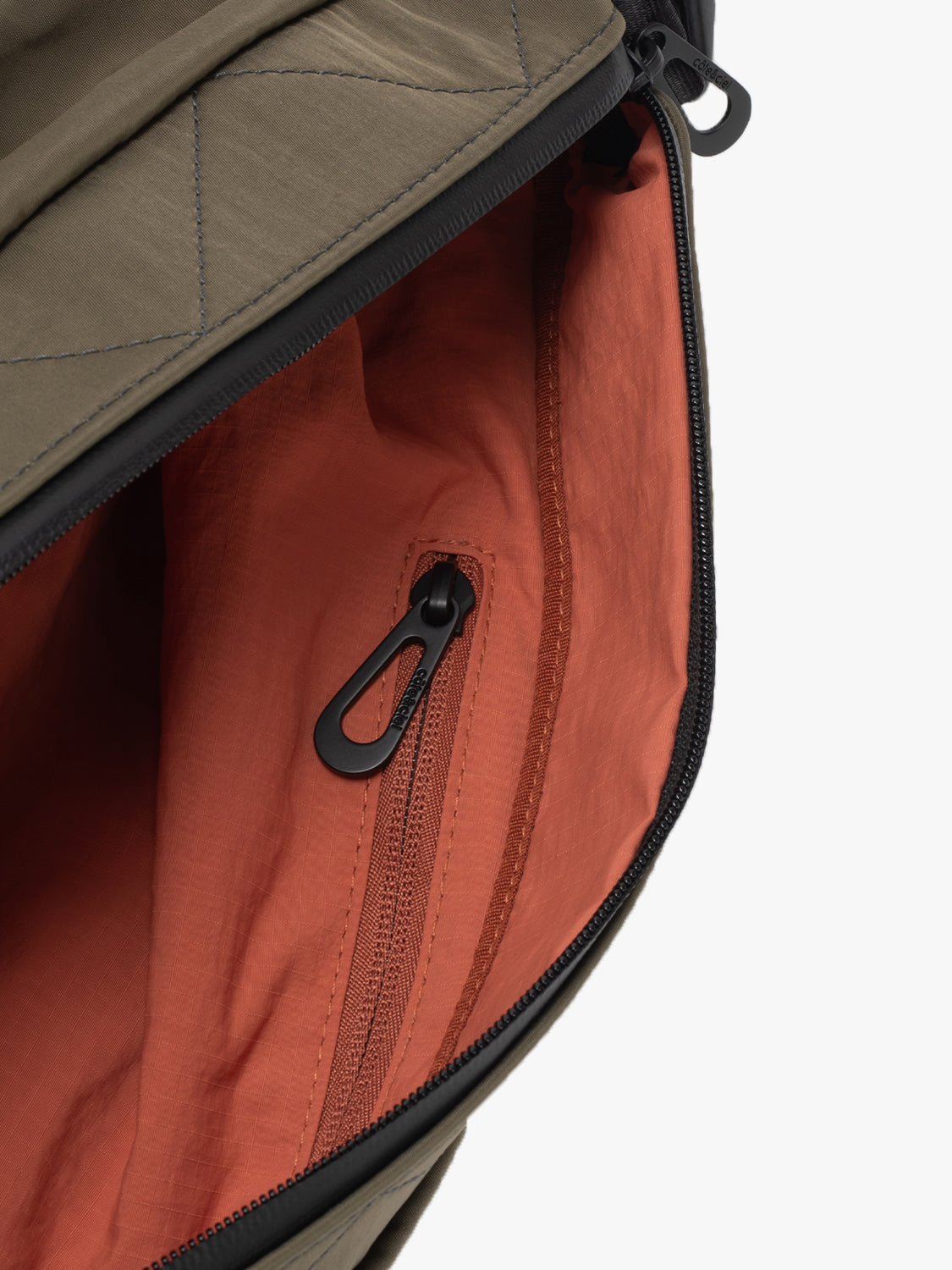 ORNE的最新版本汲取了经典飞行夹克永恒设计的灵感。采用Cargo Green尼龙制成,展示了绗缝缝线和打开包包时显现的大胆橙色内衬,这些细节与标志性的飞行夹克相呼应。