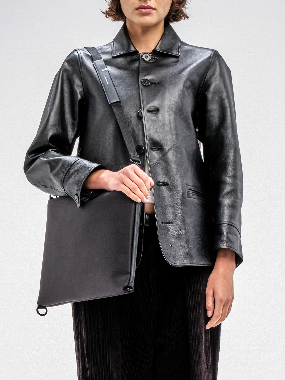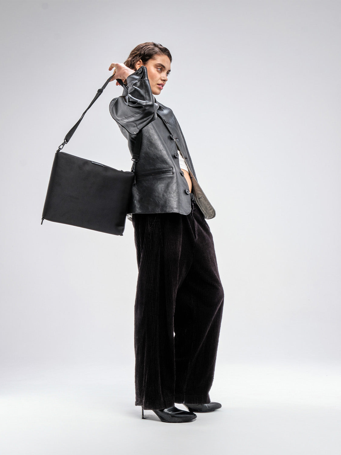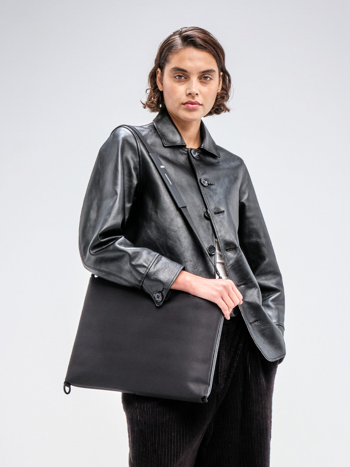 INN L 是完美的通勤包;可安全存放文件、報紙等物品,還有 筆記型電腦。兩個獨立的拉鍊隔層讓使用者輕鬆取用。